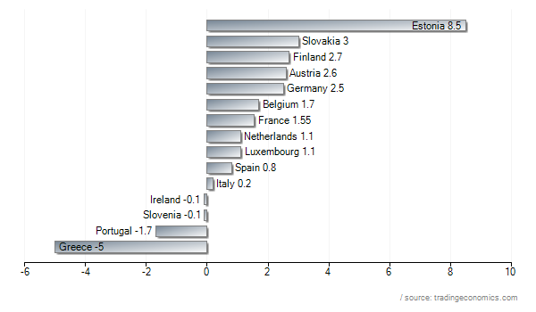 Greece is not alone in its struggle to grow as the effects of austerity bite, other Euro countries that have recently implemented austerity have seen growth slow: