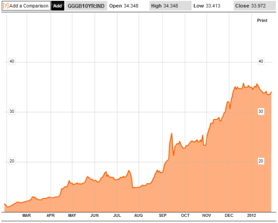Ratings agencies, which represent the interests of bond-buyers will give ratings on sovereign bonds based on how likely they think they will be repaid. Even though a nation’s sovereign debt rating can be related to its yield, the two don’t always correlate to one another. When the United States lost its AAA rating from Standard and Poor (the other two major ratings agencies kept the AAA for the US) stock markets lost record volume but demand for US sovereign debt actually went up. As I write this the yield on US 10-year bonds stands at 1.89%, while it stood at 3.01% on July 20th, 2011.
