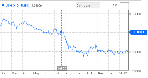 It’s worth noting that Stiglitz had similarly critical things to say about US austerity, pointing out that the US has shed 700,000 public sector jobs over four years. While European austerity has been rightly criticized for its futility, it must be pointed out that Eurozone countries have faced something that the US has not, high yields. One of the most baffling aspects of the aspects of the recent push for austerity across the Atlantic is that, while the US has lost its AAA rating by S&P, its yields have stayed historically low. While it makes little sense for Greece to endure agonizing economic contraction from austerity, it makes considerably less sense for the United States to follow that path. While borrowing costs for the US government are historically low, unemployment remains stubbornly high.