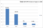 Only fifteen years ago Japan laid claim to the largest economy in East Asia and despite it’s economic headwinds (the 90s were considered Japan’s “lost decade”) few anticipated the quickness with which China would overtake it. For perspective, in 1990 when Japan was considered the chief economic rival of the US, its GDP was $3.018 trillion compared to China’s $355 billion it’s growth rate was for that year was 5.57% compared with China’s 3.8%. Japan’s economic performance was so strong that it captured the fear and imagination of the American public, with popular books and films depicting a Japanese takeover of American businesses. But after 1990 events took a dramatic turn in East Asia; China (and to a lesser extent S. Korea) has overtaken Japan in GDP every year since: